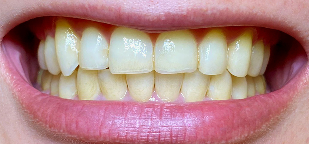 歯を削らないラミネートべニアで、歯の色と形を整えた症例。